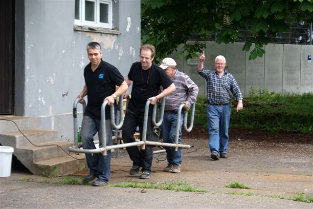 Es wurde gemäht, Fahrradständer abgebaut, das Gelände hinter dem Vereinsheim gesäubert und