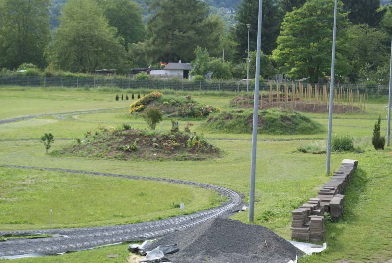 Die Erweiterung der Anlage verlängert die Fahrstrecke erheblich, ermöglicht erstmals das "Überholen" von Zügen und lässt die zukünftigen Dimensionen des geplanten Bahnhofes erkennen.