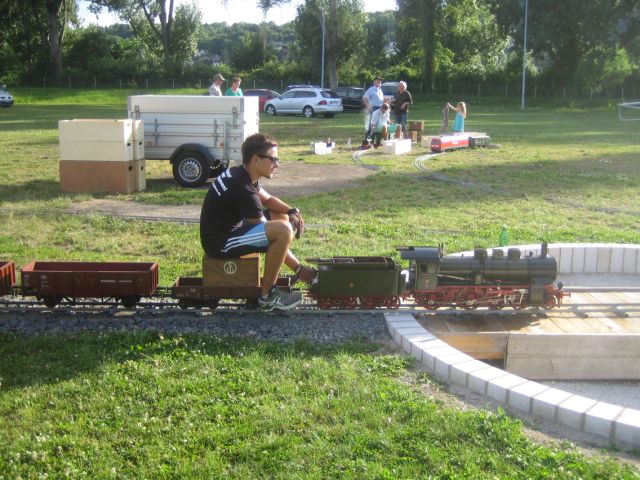 Insbesondere die kleinen Gäste fuhren begeistert auf verschiedenen Zügen, welche von Nachbildungen kleiner und großer Rangierloks und sogar einer echten kleinen Dampflok gezogen wurden, die immerhin gut 300 Meter lange Strecke ab. Die großen Gäste hingegen zeigten sich eher beeindruckt von der eingesetzten Technik und genossen das sonnige Wetter.