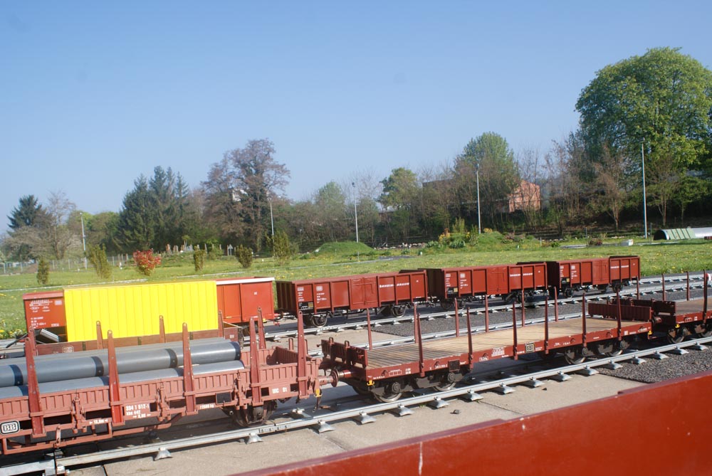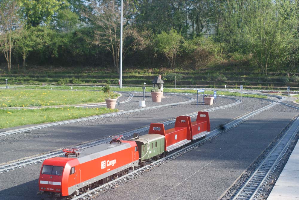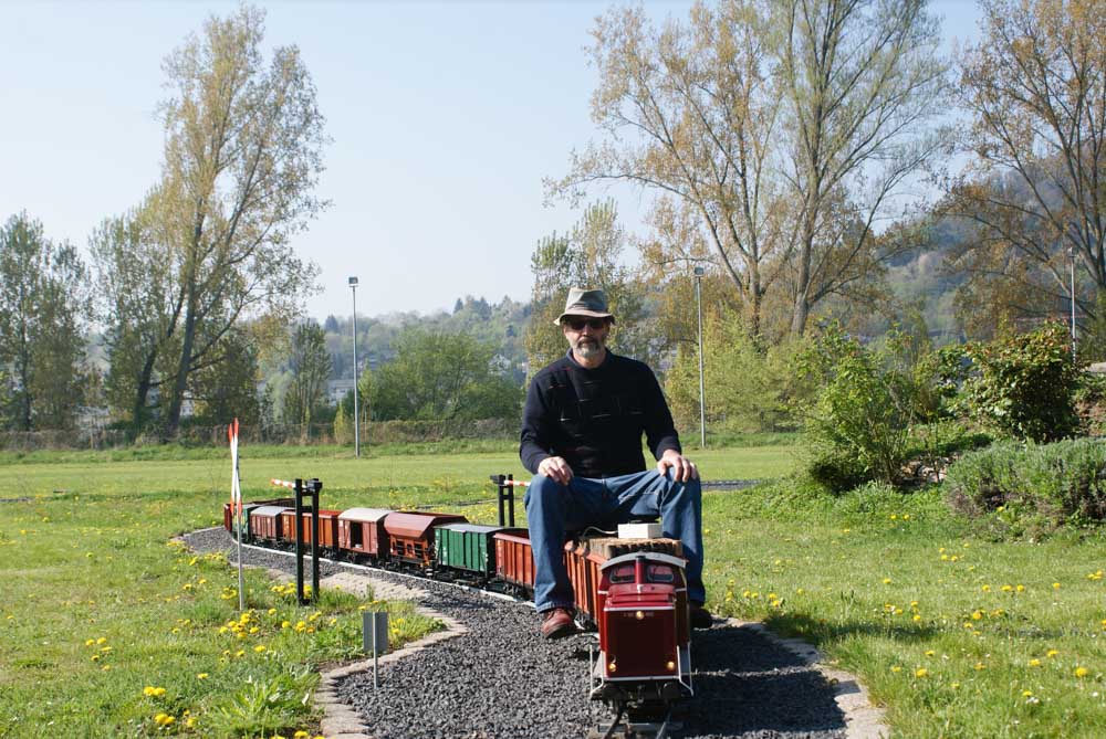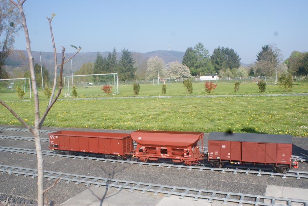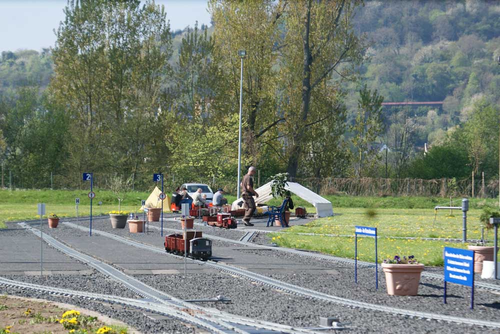 Bevor die kleinen und großen Fahrgäste die Reise am Samstag und Sonntag 8./9. April genießen konnten, gingen arbeitsintensive Tage ins Land. In der Woche vor dem ersten Fahrtag wurden die Clubmitglieder von Freunden und Bekannten aus Namborn und Roßdorf bei Erdarbeiten, Gleisbau und Gartenarbeiten unterstützt. Der Spieltrieb konnte dann am Freitag so richtig ausgelebt werden. Rangieren, Züge zusammenstellen und wieder trennen, Fahrbetrieb im Gegenverkehr mit Sicherungsschlüssel ( Tonken) wurde auf der eingleisigen Streckenabschnitt zwischen den Bahnhöfen „Am Victoriabrunnen“ und „Rheinquartier“ geprobt. Als Zugloks kamen die Modell der Regelspurdieselloks KÖF 1 und 2, V23, V36(2), V100(2) und Class 66 und ein Modell der Elektrolok 152 zum Einsatz. Kesselwagons, Flachwagons und offene Güterwagons wurden zu Ganzzügen oder gemischten Zügen zusammengestellt, getrennt und wieder zusammengefügt. Uns hat der Spieltag viel Freude bereitet und wir hoffen, dass auch die Besucher an diesem Wochenende ihre Freunde hatten.