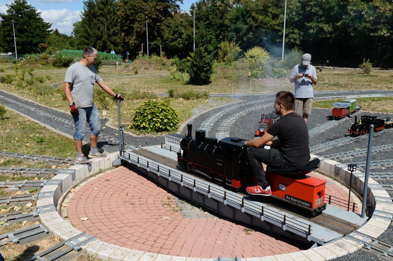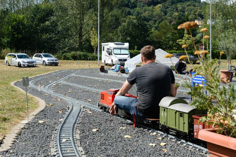 Zum Höhenpunkt der Gartenbahn Saison trafen sich zum Fahrtag am 9. und 10. August 2018, bereits zum fünften Mal, befreundetet Gartenbahner aus dem In- und Ausland, um mit den Gartenbahner des MEC das Spektakel „Rhein in Flammen“ zu erleben. Der gemeinsame Imbiss am Freitagabend mit allen Gästen gehört schon zur Tradition. Interessante Fachgespräche wurden geführt und auch die ein oder andere Erinnerung und Anekdoten ausgetauscht. Natürlich waren zu diesem Zeitpunkt die mitgebrachten Modelle aufgegleist und ergänzten in imposanter Art und Weise den Fuhrpunkt der Vereinsmitglieder. Am Samstag und am Sonntag wurde dem fachkundigen Publikum interessante Echtdampfmodelle verschiedener Baureihen vorgeführt werden. Vergessen werden auch nicht die zahlreichen Modelle von Elektro – und Dieselloks. Natürlich freuten sich auch die kleinen Besucher bei den zahlreichen Mitfahrten auf der Gartenbahn. Auch der Baufortschritt überraschte mit einem neuen Bahnhofsbereich. Nun kann der Spielbetrieb, unter Einbeziehung des Gleisdreieckes und des Bahnhofes „Am Rheinquartier“ voll ausgelebt werden, was an diesem Wochenende bereits ausgiebig genutzt wurde.