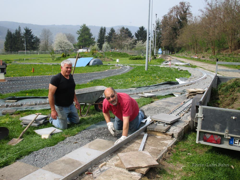 Das Modell des Stellwerk VII wurde ins trockene geholt, um abschließend den Sockel zu verfugen und die fehlenden Fenster einzusetzen. Auch für den Wasserturm wurde vorbereitende Arbeiten begonnen, sobald das Wetter es wieder zulässt werden die benötigten Modellklinker gesetzt, eine trotz Wasserspülung staubige Arbeit. Die ersten 2qm von 12 qm Modellklinker konnten bereits geschnitten werden.
