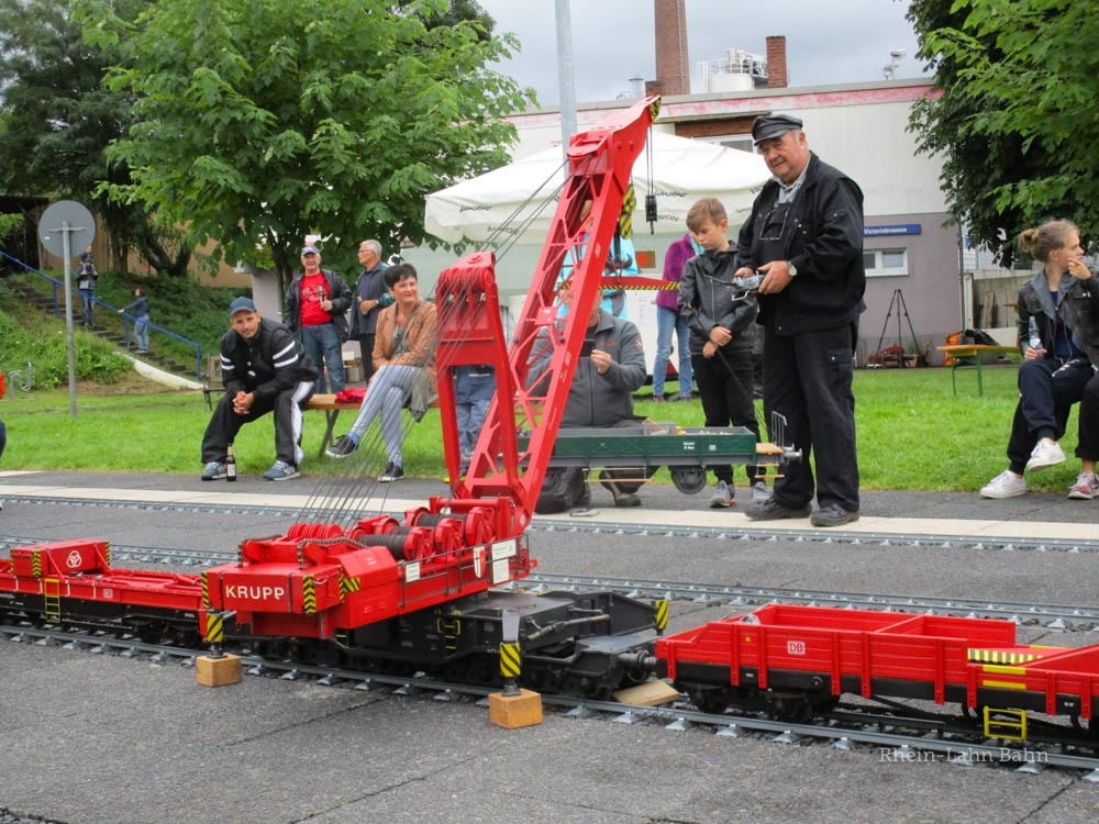 Im Mai konnten wir nach einjähriger Bauzeit die Eröffnung des Bahnhofes „Rheinquartier“ feiern. Absoluter Höhepunkt war natürlich unser Fahrtag an „Rhein in Flammen“. Wie in jedem Jahr konnten wir internationale und nationale Gäste begrüßen. Die Dampfloks begeistern Groß und Klein genauso wie ein Eisenbahnkran in Maßstab 1:11. Natürlich kamen die Dampfloks auch vor den Personenzügen zum Einsatz. Mit einem gemeinsamen Abendessen am Freitagabend eröffneten wir den Augustfahrtag.