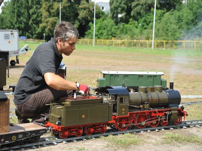 Als Zugmaschinen können neben den üblichen Elektrolokomotiven sogar "echte" kleine Dampfloks eingesetzt werden, die wie ihre großen Vorbilder gepflegt, geheizt und bedient werden wollen.